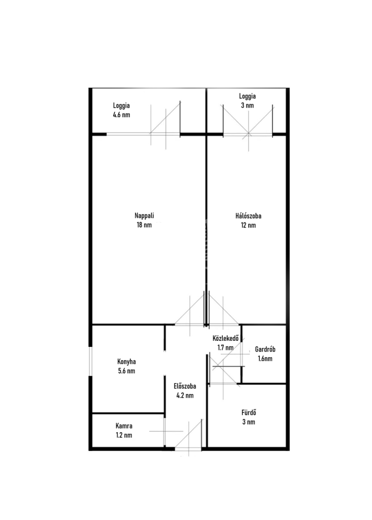 - Külön nyíló szobák – nincs átjárás