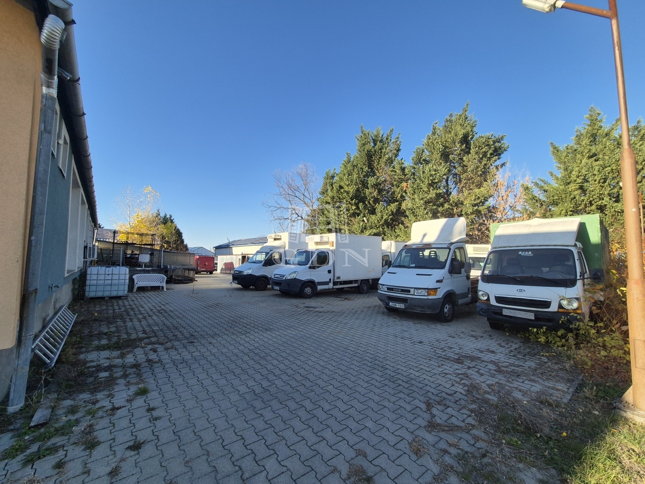 A nagy részben betonozott és térkövezett telken egy körbejárható, szigetelt, kifogástalan állapotú, korszerű gépészettel, konyhával, tárgyalóval, szobákkal és szociális helyiségekkel rendelkező, 200 m2 alapterületű épületet találunk.