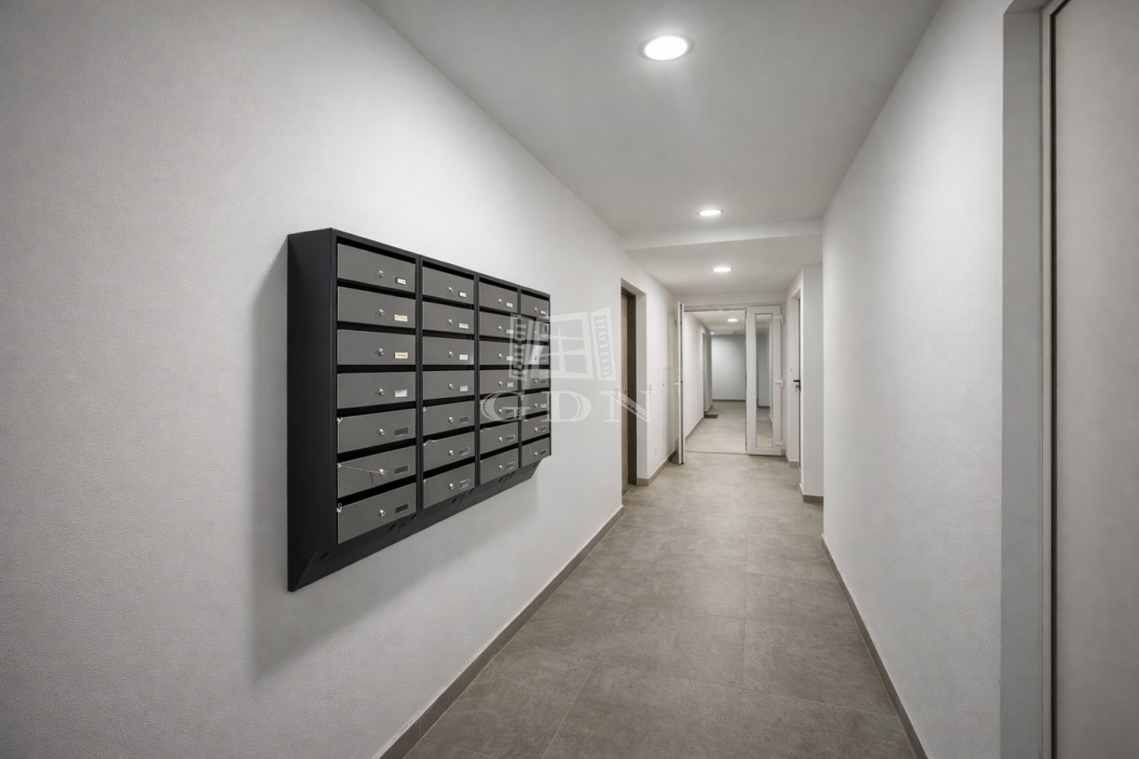 A lakáshoz tartozik egy kizárólagos használatú tároló és egy darab fedett gépkocsibeálló a lépcsőház aljában. A társasház alsó szintjén egy mélygarázs is található.