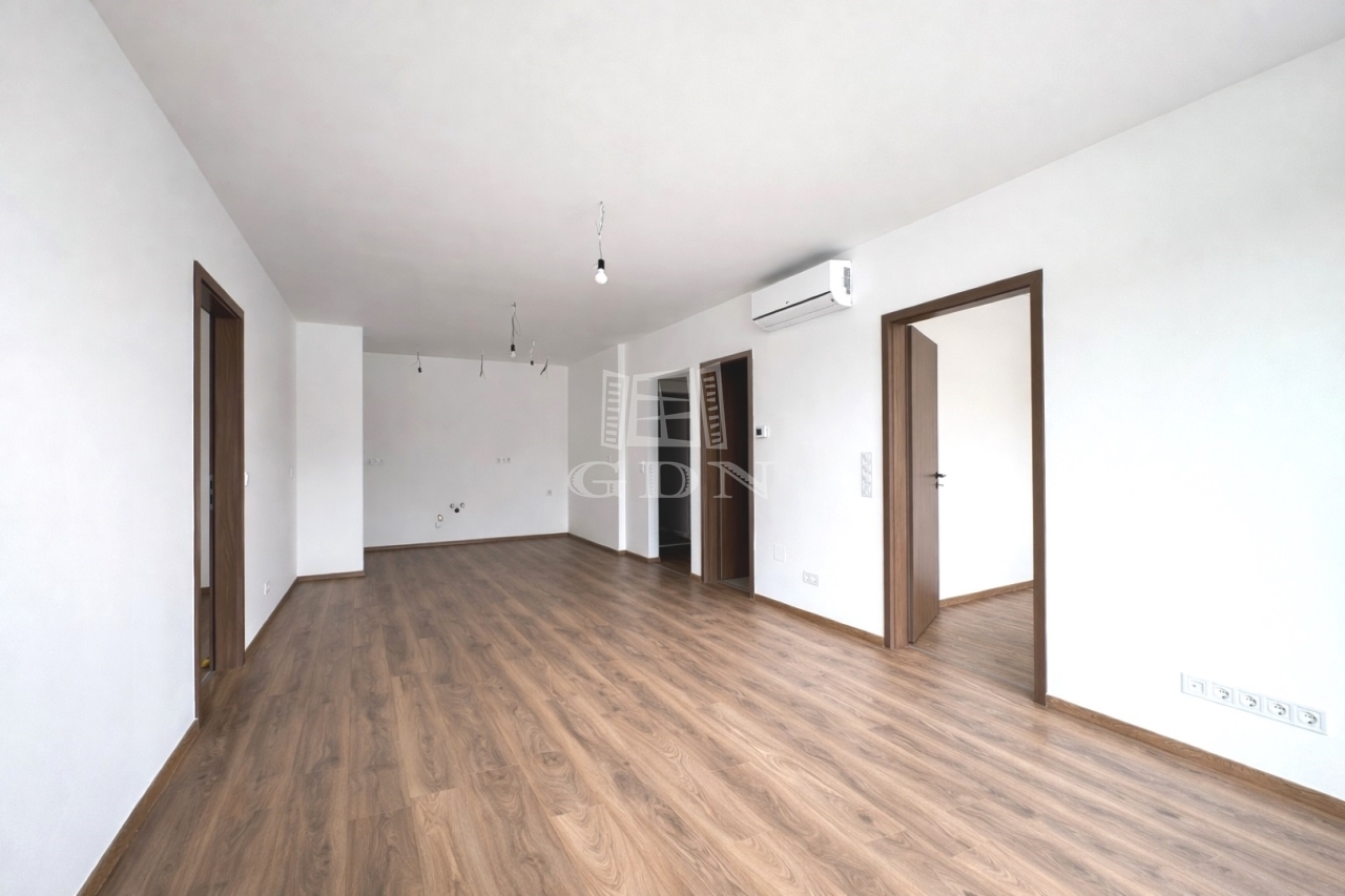 A lakás elosztása kiváló: előszoba, külön WC, fürdőszoba, amerikai konyhás nappali és két hálószoba került kialakításra. A nappaliból és mindkét hálószobából közvetlen kijárat nyílik a két erkélyre, amelyek mérete 4,5 m² és 8,8 m².
