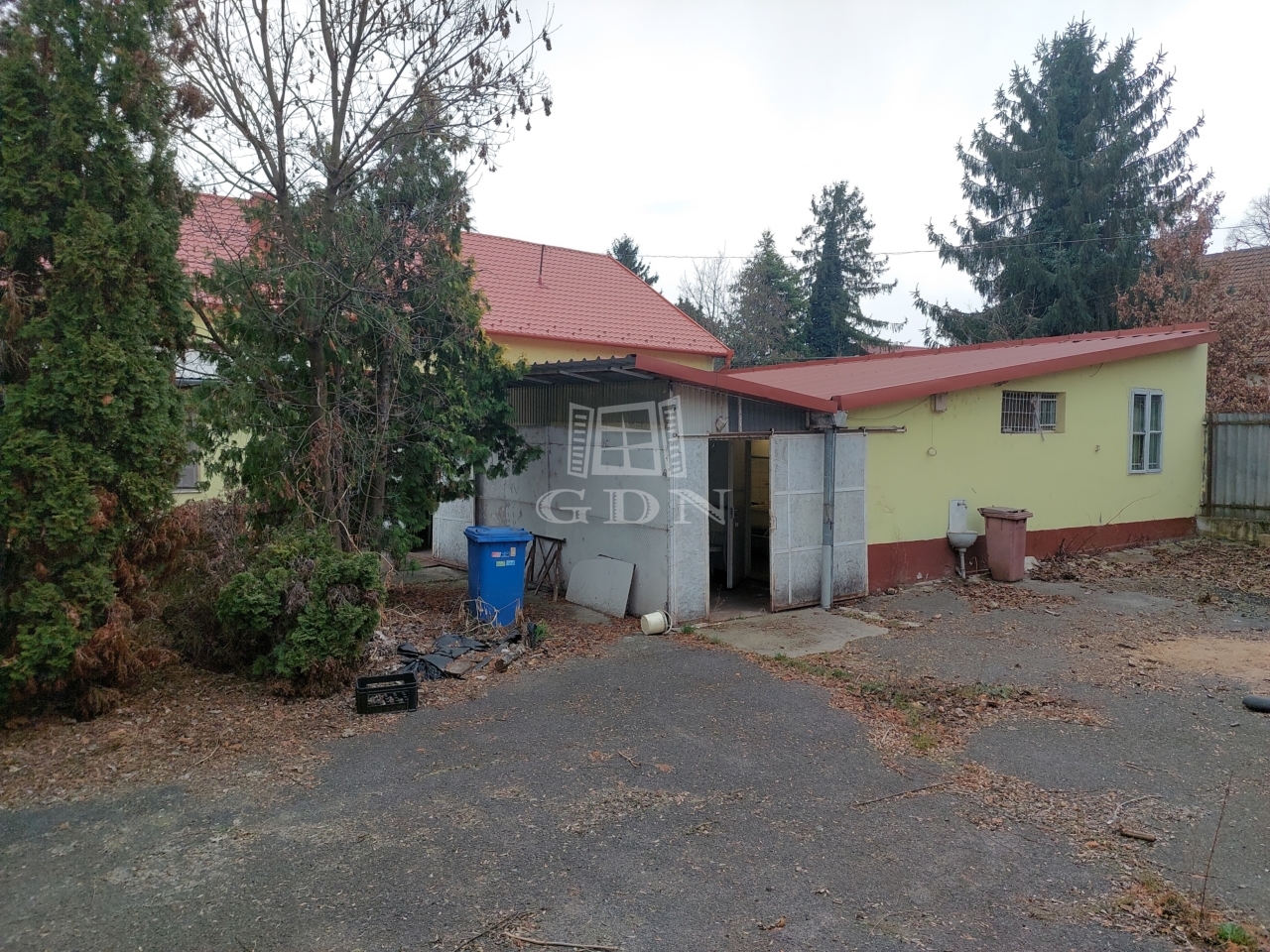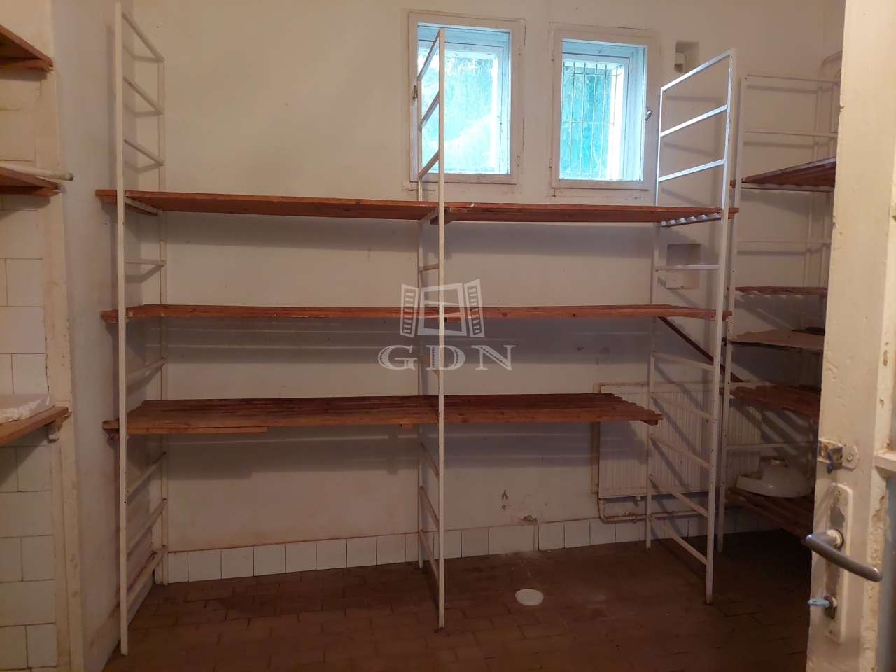 A telek saroktelek ezért két utcára nyílik, két utcáról is be lehet menni az épületbe. A főépület belül két teljesen elválasztott egységből áll: az irodai épületrész 55nm és az üzlethelyiség raktárral 300nm. Az irodai épületrész alatt 8nm alapterületen pince található. Az üzlethelyiség és raktár épületrész korábban élelmiszer előállító üzem volt, belső felújításra szorul. Mindkét épületrész a külön megközelíthetőség miatt önállóan alkalmas a bérbeadásra.