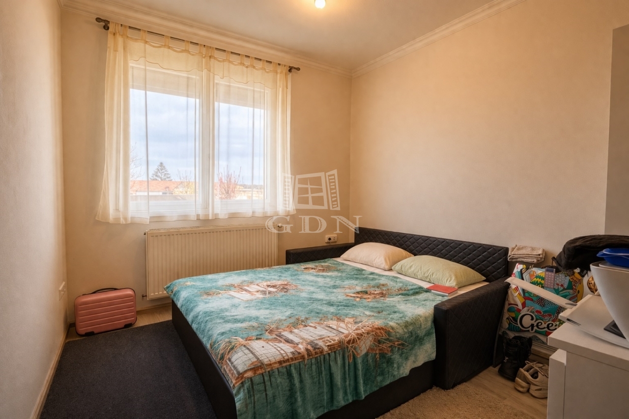 Elosztását tekintve 115m2 hasznos alapterületű. Előszoba, vendég WC, nappali-étkező, konyha, kamra, 3 hálószoba és beépített terasz lett kialakítva.