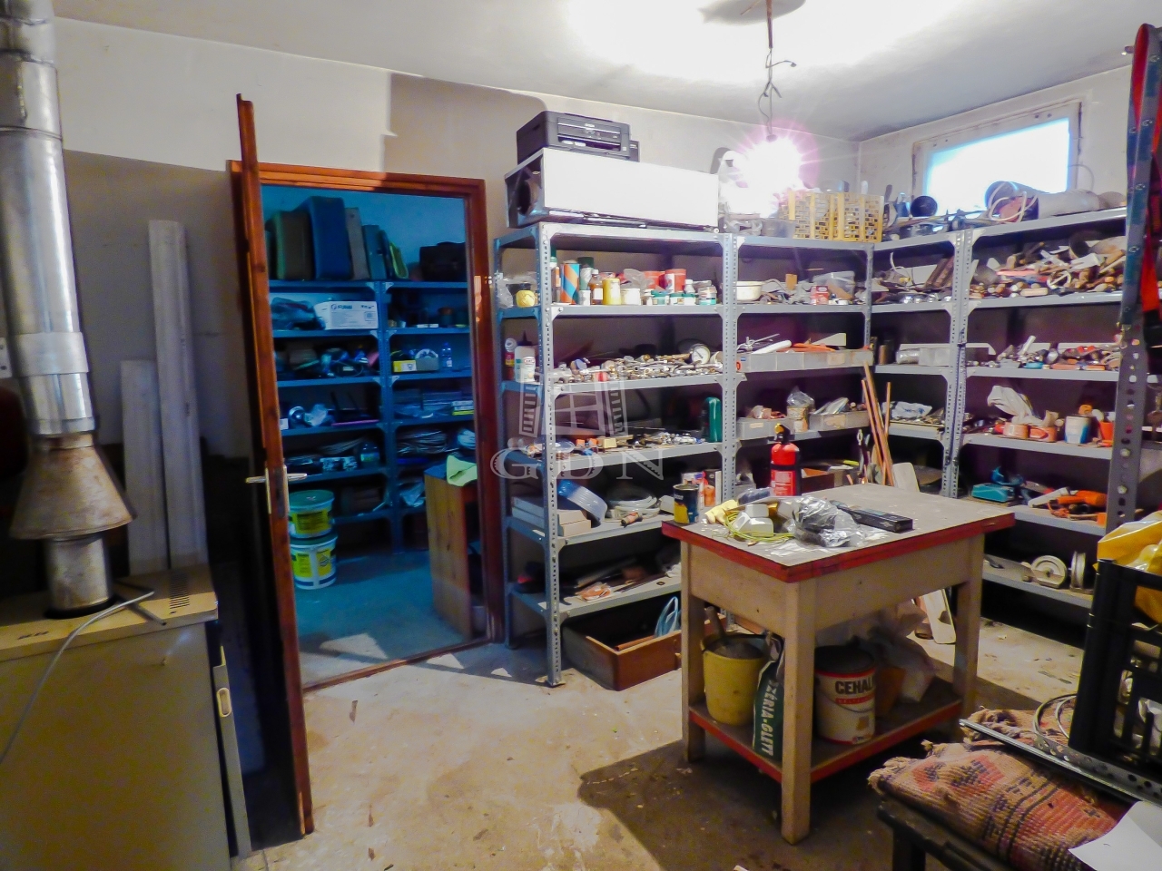 Az emeleti lakrészen, óriási nappali (ami akár 3 szobává alakítható), hálószoba, konyha, kamra, fürdőszoba lett kialakítva.