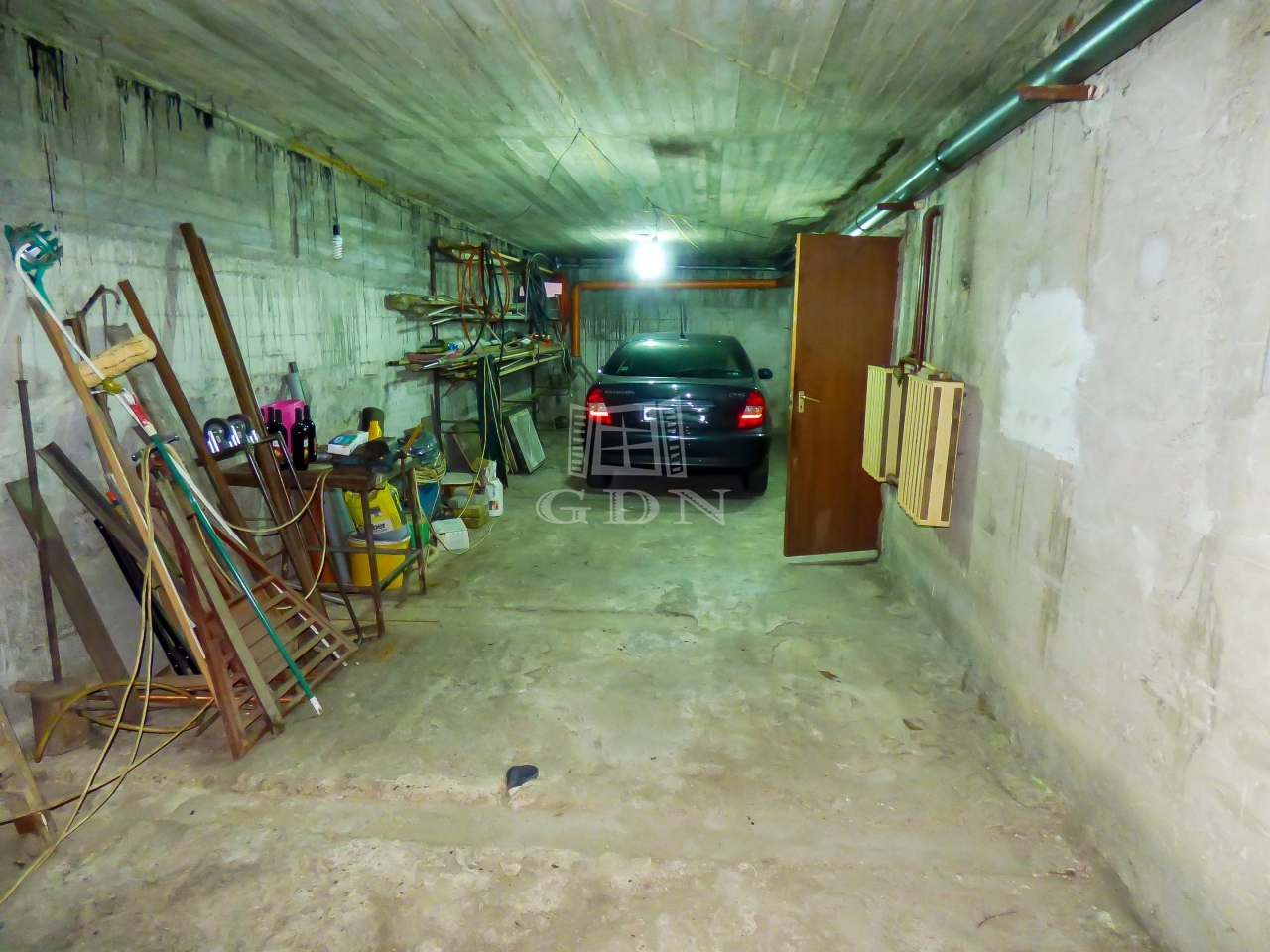 A pinceszinten iroda, amely akár hobby szobaként is funkcionálhat, tárolók, kazánhelyiség, wc, kézmosó és egy fűthető dupla garázs található.