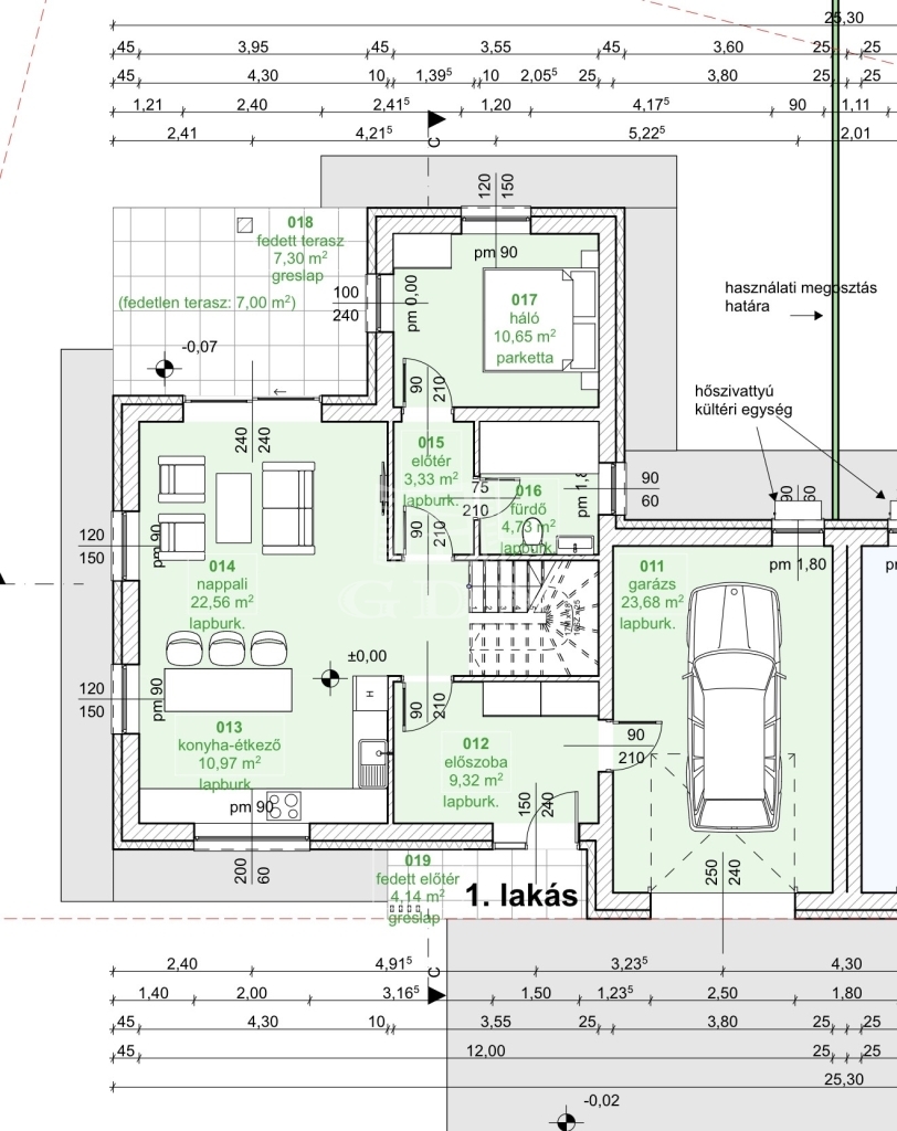 2. lakás: nettó 122 nm alapterület + 24 nm garázs + 23 nm terasz, 509 nm telekterület, 160.000.000 Ft