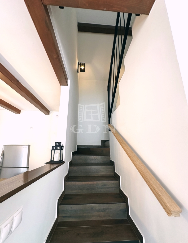 A belső tér letisztult, mégis karakteres: tömör fa nyílászárók, kandalló kialakításának lehetősége, elektromos redőny és riasztórendszer kiépített vezetékezéssel. Az önálló garázs biztosítja a kényelmes parkolást és a praktikus tárolást, így minden nap egyszerű és rendezett marad.
