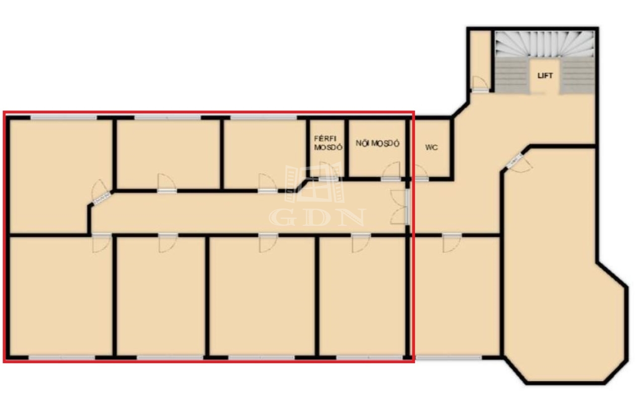 ‣ a helyiségek a lépcsőháztól elzárt folyosón helyezkednek el, emiatt alkalmas privát ügyfélforgalom lebonyolítására is.