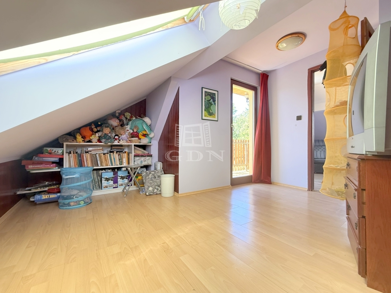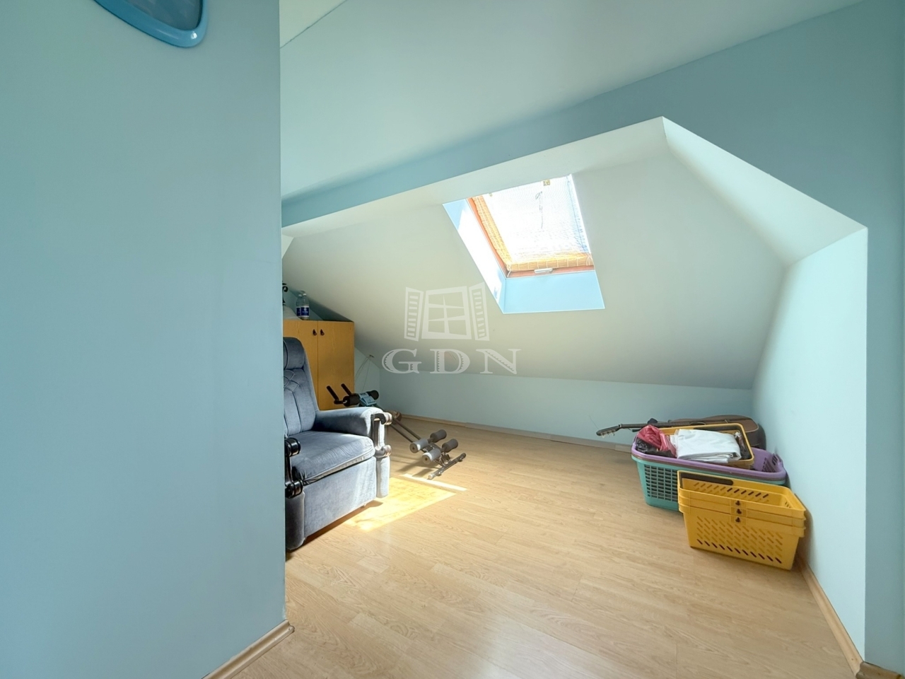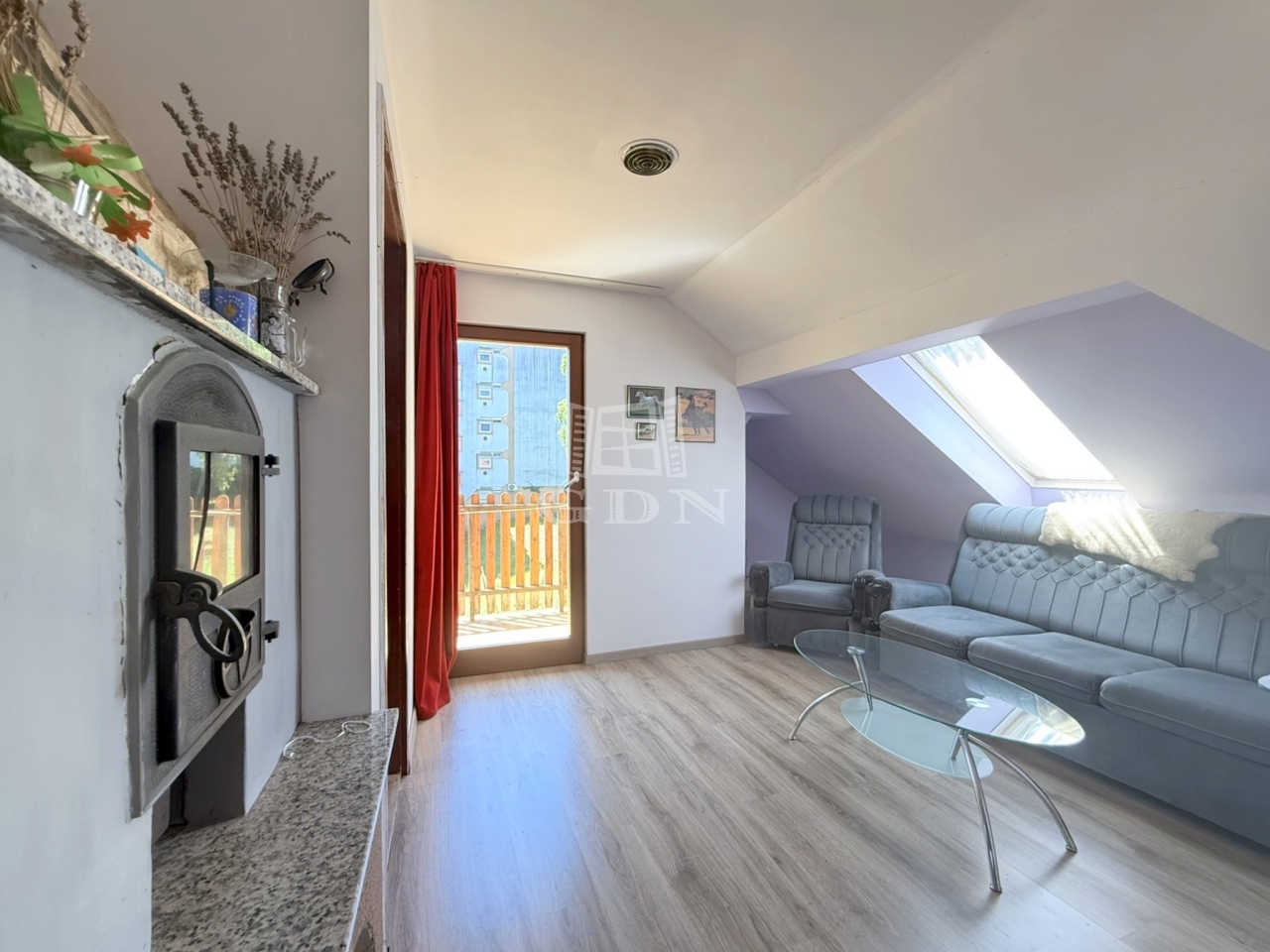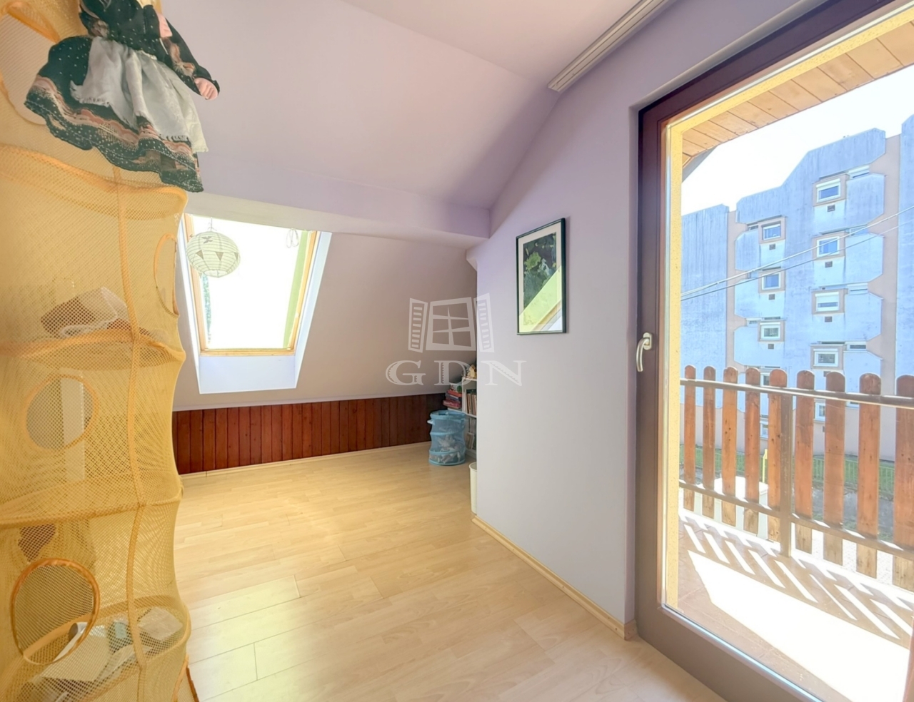 A tetőtér beépítésre került egy kis lakás formájában, melyben egy pici főzőfülke, egy zuhanyzóval és toalettel ellátott fürdő, egy nappali és 2 háló áll rendelkezésünkre. A nappali és az egyik háló szintén erkélykapcsolatos.