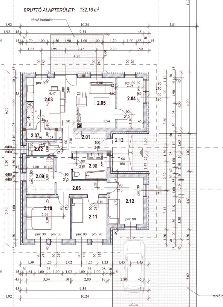 ● Nappali + 4 hálószoba + kamra + háztartási helyiség+ fürdőszoba+ vendég wc+ terasz(16m2)