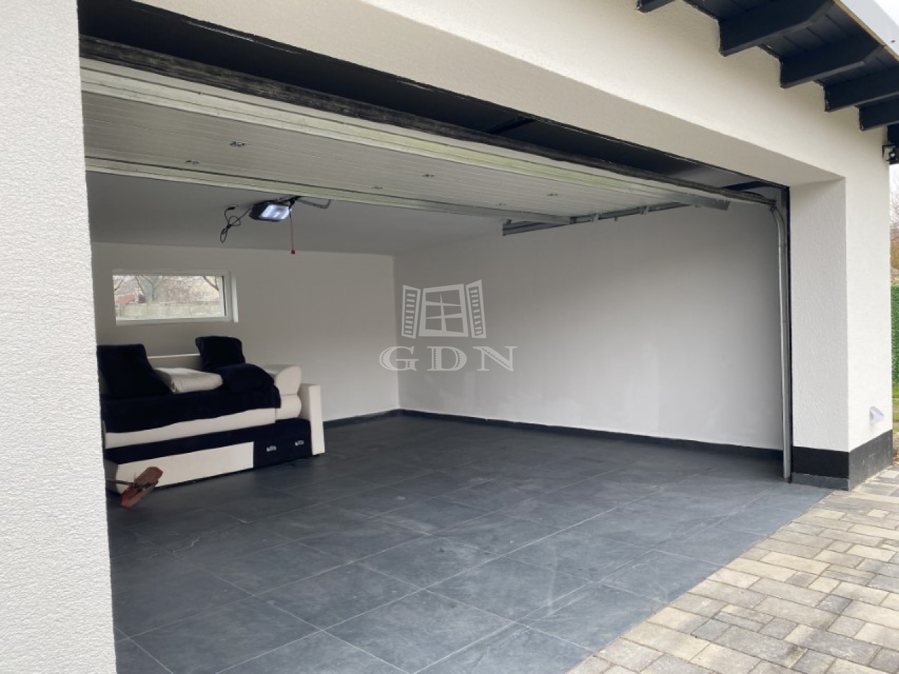 Egy gépesített, közel 50 m2-es amerikai konyhás nappali, egy szülői háló gardróbbal és fürdőszobával, kettő hálószoba, fürdőszoba, kazánház és egy nagyobb, mint kétállásos garázs lett kialakítva. A házhoz kapcsolódik egy 16m2-es fedett terasz is.