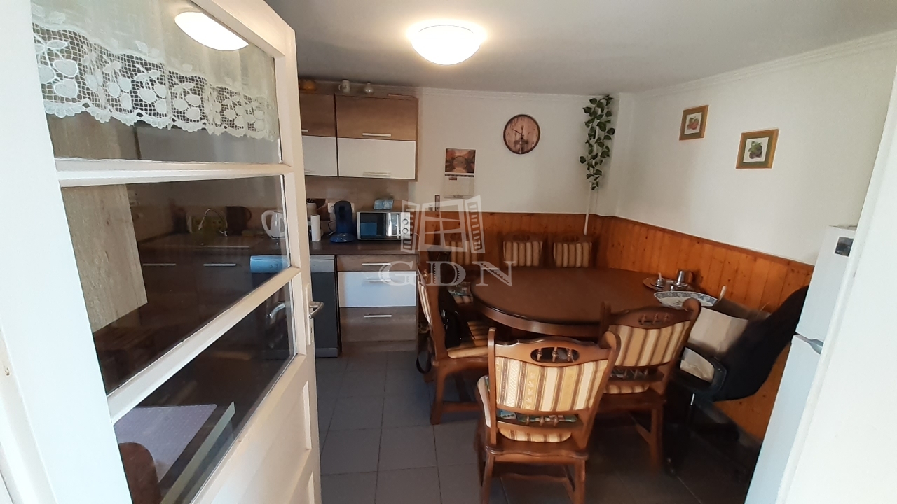 A fő épületben nem található külön konyha a méret miatt, viszont egy fedett nagy terasz köti össze a pár lépésre lévő szépen berendezett téli-nyári konyhával. Itt minden megtalálható, amire szükségünk lehet: konyhai nagygépek (mosogatógép, hűtő, elszívó, stb.), beépített szekrények, nagy ebédlő asztal, teljes közmű, fűtés.