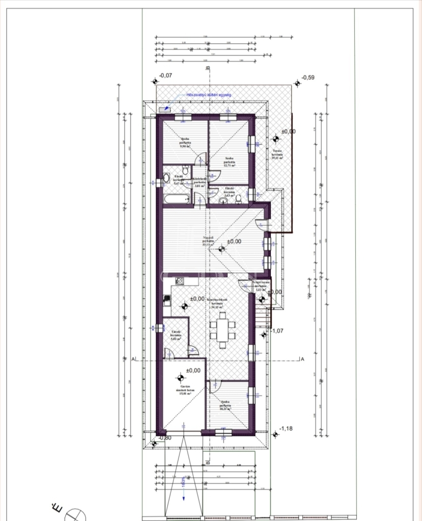 - Nappali + étkező + konyha, közvetlen kapcsolat a 39 m²-es terasszal