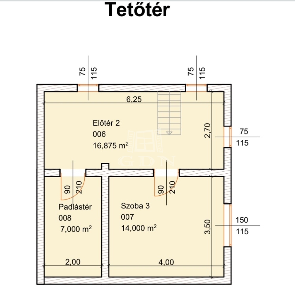 A beéíptett tetőtér 15 éve került kialakításra, a korábbi padlástérből, amely egy előteret, és egy teljes értékű szobát, valamint egy fél szobát tartalmaz.