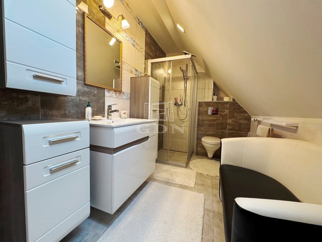 A tetőtéri fürdőszobát kibővítették és teljesen felújították. Az udvar felőli teraszt télikertté alakították, kiváló minőségű alumínium nyílászárók beépítésével és új padlóburkolat lerakásával.