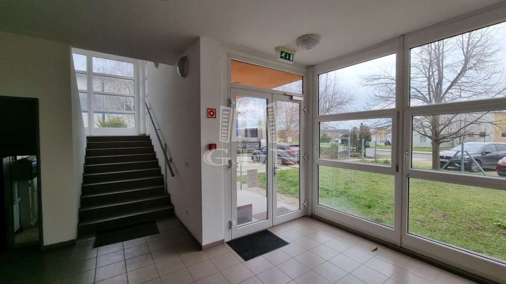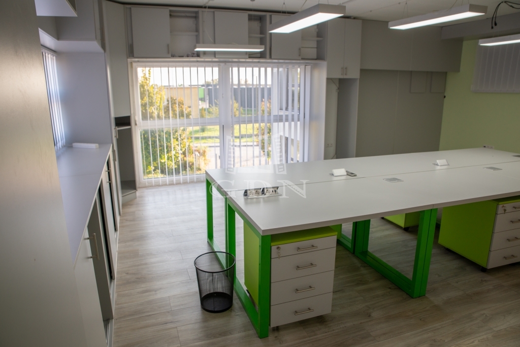 A csarnokhoz bérelhető egy újszerű állapotú, első emelti, klímás, 45 m2-es irodahelyiség közös használatú WC/mosdóval és teakonyhával. Igény esetén tárgyalóhelyiség is bérelhető.