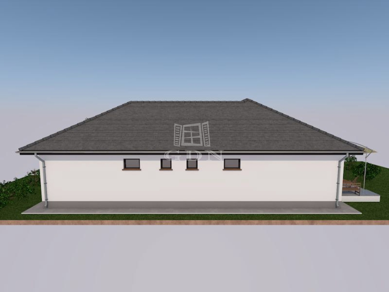 Vácszentlászlón a Nap utca 1. szám alatt, 700 m²-es telken, eladó egy 30-as Porotherm P30 N+F falazóelemből épülő, új építésű, nettó 113,66 m²-es, közel nulla energia igényű, betoncseréppel fedett kulcsrakész 4 hálószobás családi ház.