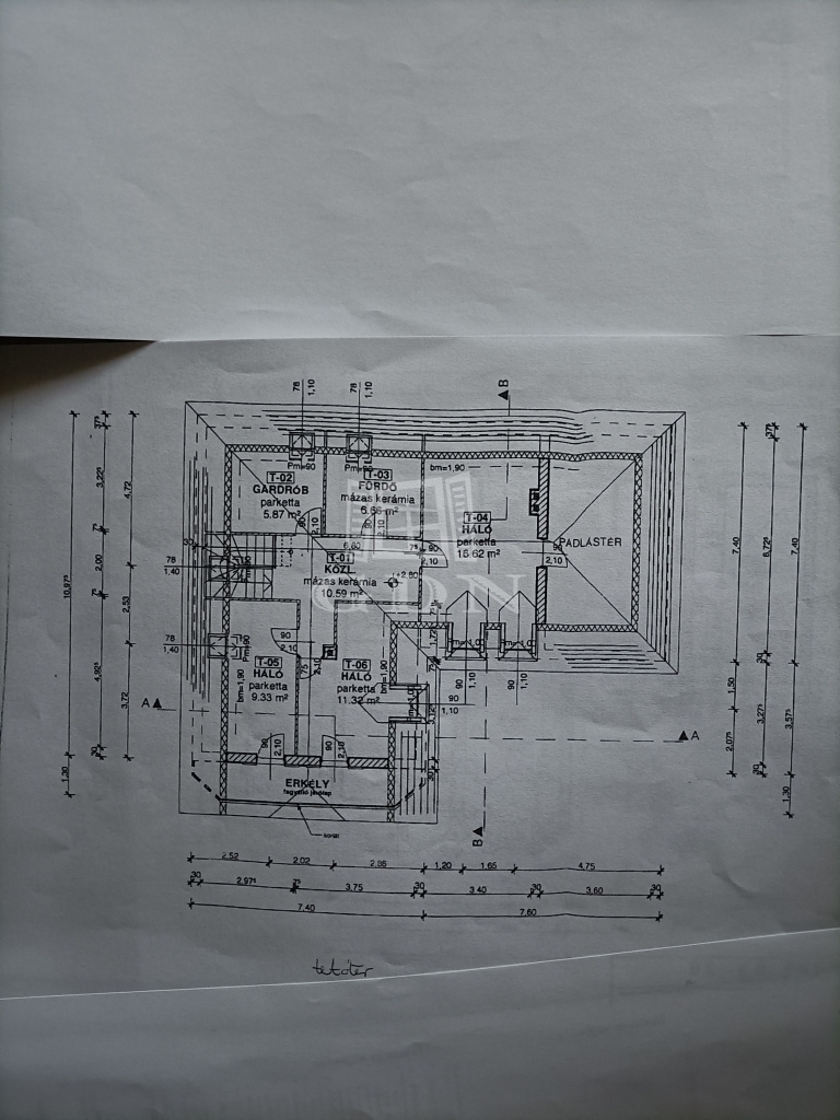 nappali, konyha-étkező, 2 hálószoba, 2 fürdőszoba, kamra, kazánház és gardrób.