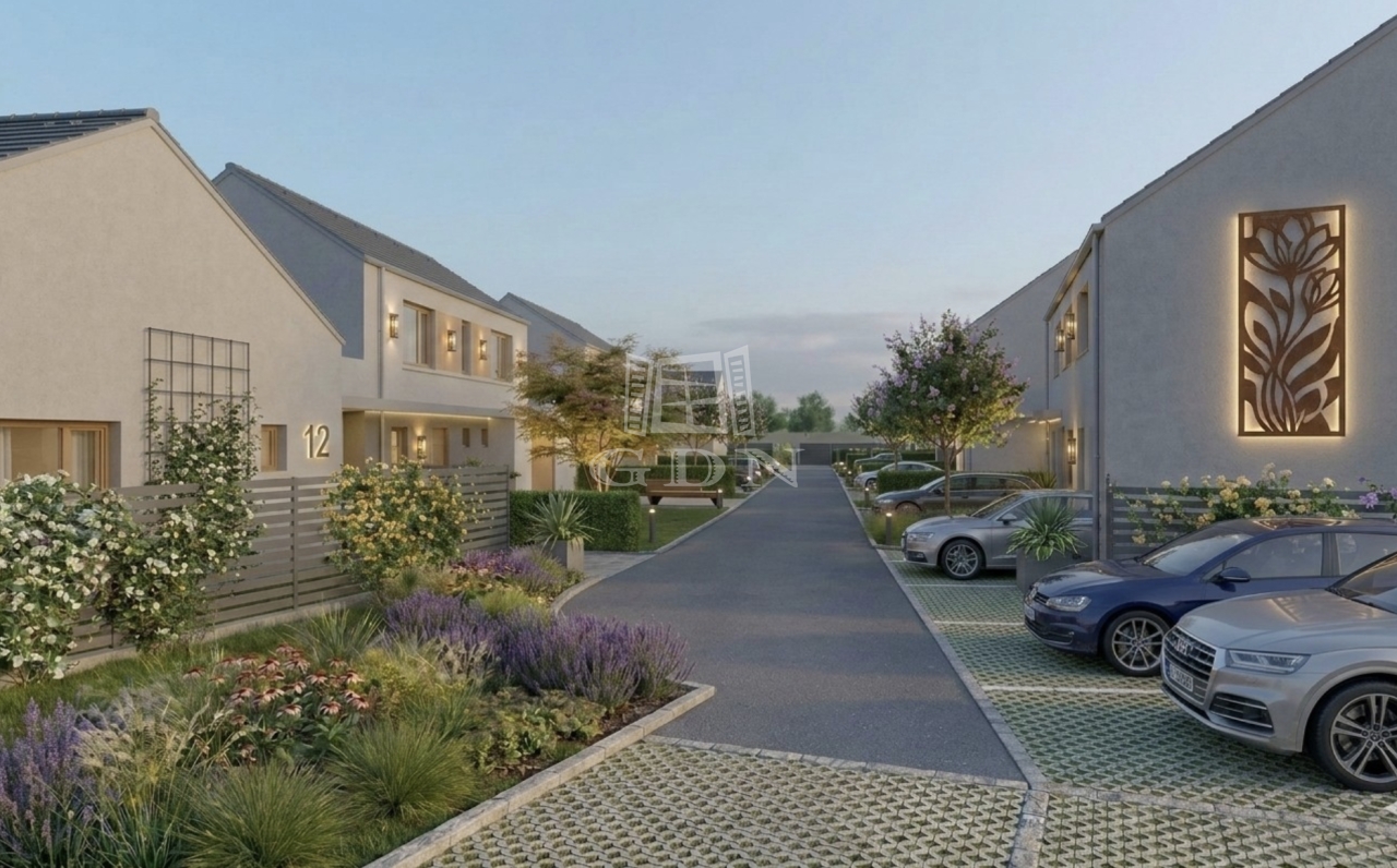 - 4 db kétszintes lakás garázzsal + terasszal + saját kertrésszel.
